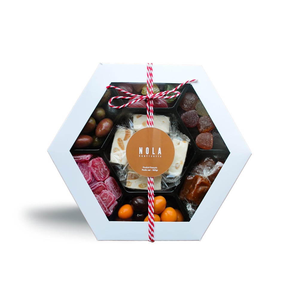 Our Box No. 4, a carefully crafted selection of a variety of confectionery to satisfy all sweet cravings. This box offers you a gourmet journey, revealing an assortment rich in flavors and textures.